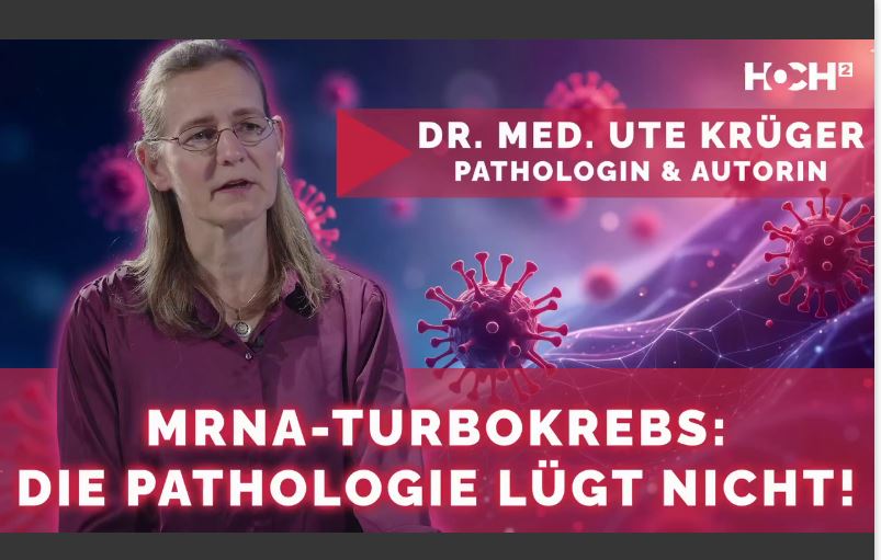 Dr. med. Ute Krüger, Pathologin und Autorin, spricht über Covid-Injektionen und Turbokrebs. Krüger veröffentlichte zusammen mit dem Pathologen Prof. Dr. med. Walter Lang das Buch «Geimpft − gestorben», ein histopathologischer Atlas der Corona-Impfschäden, der die Untersuchungen der Pathologen Prof. Dr. med. Arne Burkhardt und Prof. Dr. med. Walter Lang illustriert. Die Pathologie lügt nicht! Bereits 2021 konnten Burkhardt und Lang beweisen, dass die Ursache der Übersterblichkeit die COVID-Injektionen waren – und weiterhin sind! Burkhardt: «Ich sehe eine Übersterblichkeit aufgrund der mRNA-Impfung.» Behörden, Mainstream- und System-Medien ignorierten auch diese wissenschaftlichen Befunde!!
